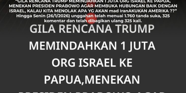 Tempo melalui artikel cek fakta menegaskan bahwa klaim Donald Trump merencanakan relokasi warga Israel ke Papua atau wilayah Indonesia lainnya adalah tidak benar. Hasil verifikasi tidak menemukan bukti sahih, pernyataan resmi, maupun kebijakan dari Trump atau pemerintah Amerika Serikat yang mendukung narasi tersebut.