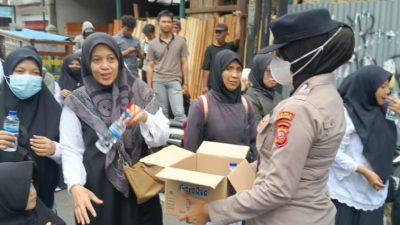 Di tengah terik matahari yang menyengat, sejumlah Polwan Polres Tasikmalaya Kota menunjukkan kepeduliannya dengan membagikan air mineral kepada massa aksi. Langkah humanis ini mendapat apresiasi tinggi, mengingat mayoritas peserta aksi adalah guru perempuan.