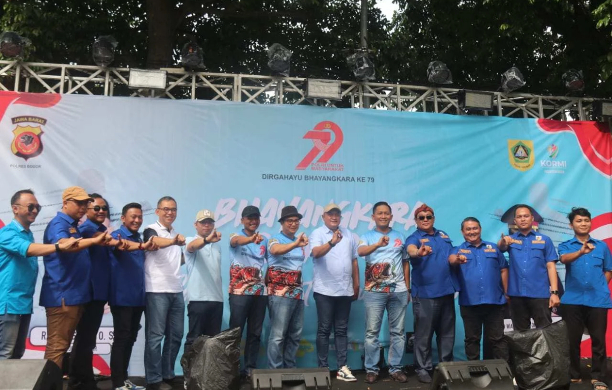 Bupati Bogor, Rudy Susmanto, mengapresiasi kegiatan merakyat Polres Bogor dalam rangka Hari Bhayangkara ke-79,