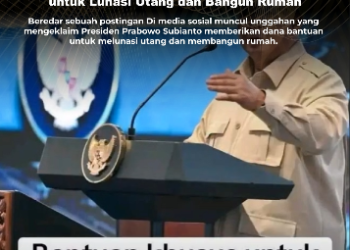 Berita MANIPULATED CONTENT [HOAKS] Prabowo Beri Dana Bantuan untuk Lunasi Utang dan Bangun Rumah Januari 23, 2026