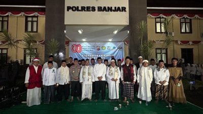 Suasana khidmat dan penuh harap menyelimuti halaman Mapolres Banjar pada Minggu malam (10/8/2025). Ratusan warga Kota Banjar dari berbagai elemen masyarakat berkumpul dalam acara Dzikir dan Doa Bersama untuk memperingati Hari Ulang Tahun ke-80 Kemerdekaan Republik Indonesia. Inisiatif kolaboratif antara Polres Banjar dan Pengurus Nahdlatul Ulama (NU) Kota Banjar ini berhasil menyatukan lebih dari 500 orang dalam satu ikatan doa untuk Indonesia.