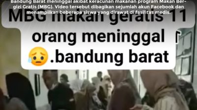Unggahan di media sosial mengklaim 11 warga Desa Sirnagalih, Cipongkor, Bandung Barat meninggal akibat keracunan makanan program Makan Bergizi Gratis (MBG). Video tersebut dibagikan sejumlah akun Facebook dan menampilkan beberapa siswa yang dirawat di fasilitas medis.