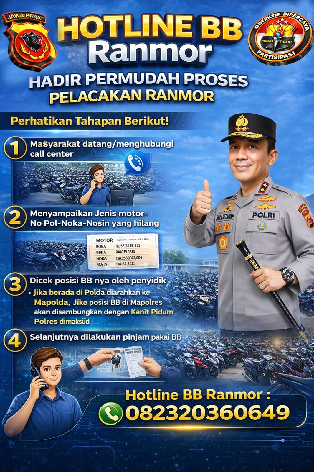Kabar gembira untuk seluruh masyarakat Jawa Barat! Polda Jabar kini menghadirkan layanan HOTLINE BB Ranmor (Barang Bukti Kendaraan Bermotor) yang siap membantu Anda mendapatkan kembali kendaraan yang hilang akibat tindak pidana pencurian.