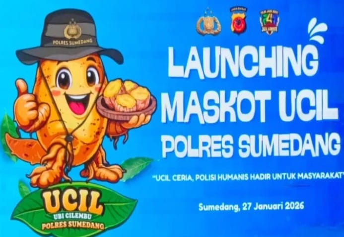 Polres Sumedang melakukan terobosan kreatif dalam mendukung potensi ekonomi daerah. Kapolres Sumedang, AKBP Sandityo Mahardika, secara resmi meluncurkan “UCIL”, maskot ubi Cilembu, dalam sebuah seremoni di Gelanggang Serba Guna Polres Sumedang, Senin (27/1/2026).