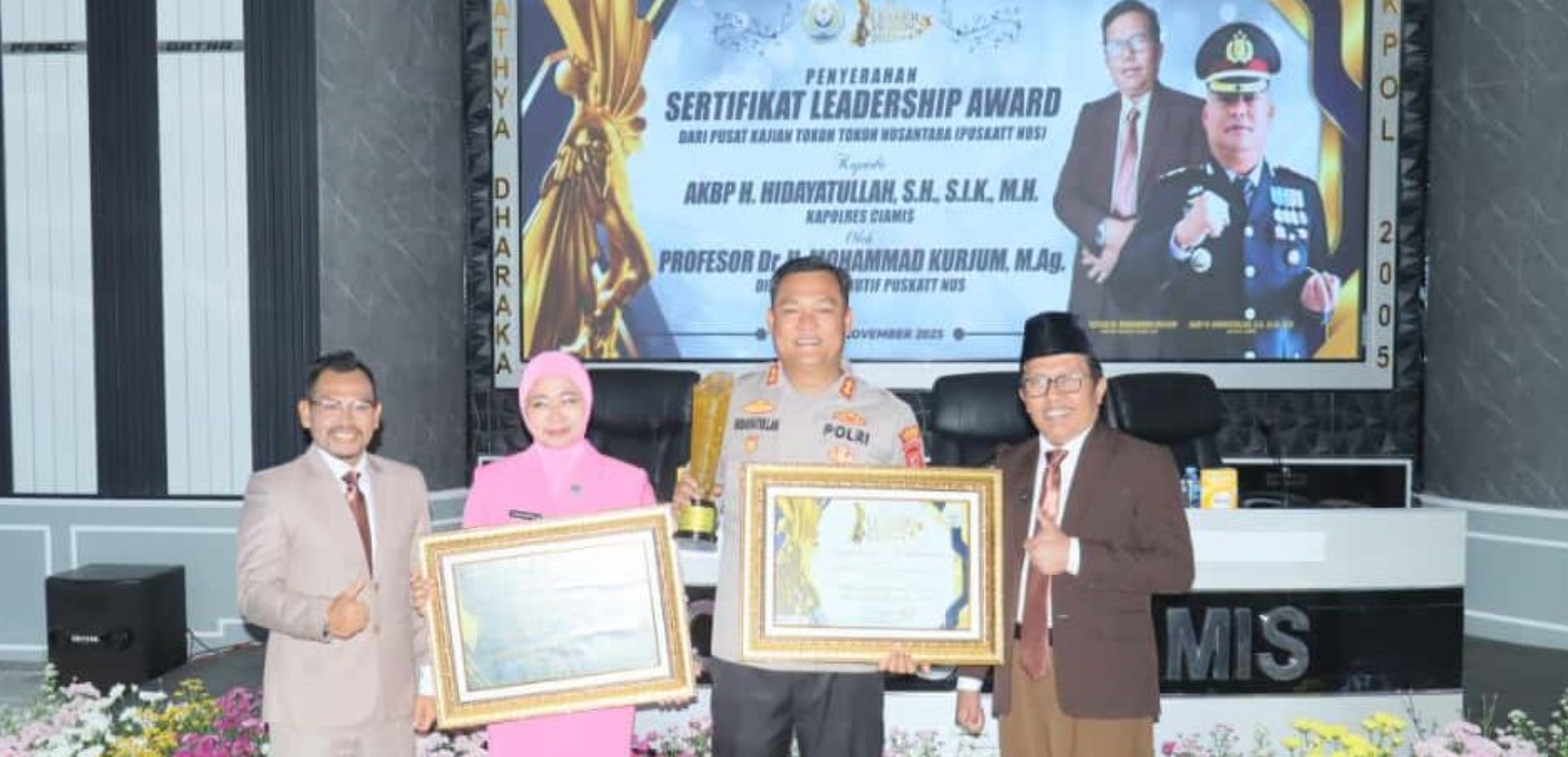 Kepala Kepolisian Resor (Kapolres) Ciamis, AKBP Hidayatullah, S.H., S.I.K., kembali menorehkan prestasi membanggakan di tingkat nasional. Ia berhasil meraih dua penghargaan bergengsi yang diserahkan di Jakarta pada Selasa (11/11/2025), sebagai bentuk apresiasi atas dedikasi dan kepemimpinan humanisnya dalam menjalankan tugas.