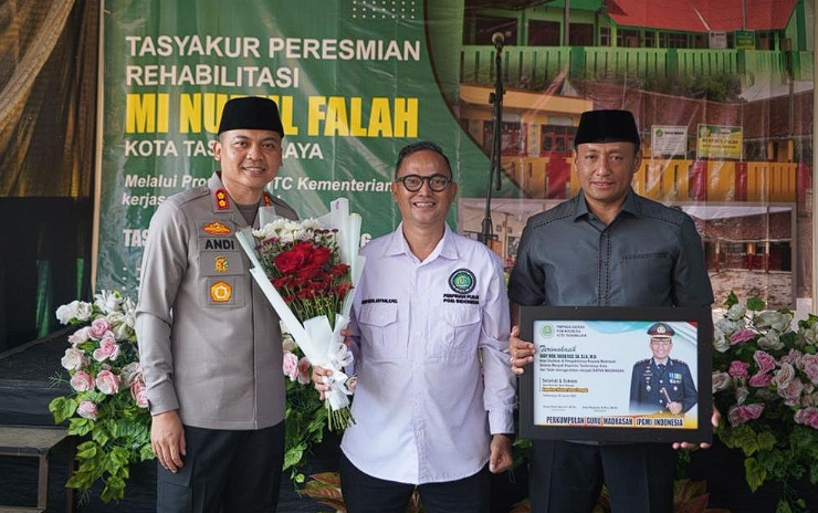 Kapolres Tasikmalaya Kota yang baru, AKBP Andi Purwanto, S.I.K., M.Si., bersama Kapolres Tasikmalaya Kota lama, AKBP Moh Faruk Rozi, S.H., S.I.K., M.Si., melaksanakan kegiatan tasyakuran ruang kelas belajar di MI Nurul Falah, Rabu (7/1/2026). Kegiatan ini merupakan bentuk dukungan nyata jajaran Polres Tasikmalaya Kota terhadap peningkatan kualitas sarana pendidikan di wilayah hukumnya.