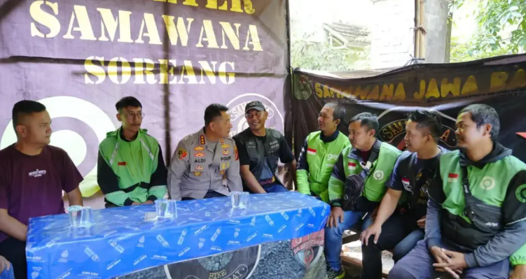 Kapolresta Bandung, Kombes Pol Aldi Subartono, mengunjungi Posko Ojek Online Samawana Jawa Barat di Soreang, Kabupaten Bandung, Senin (1/9/2025). Kegiatan tersebut dilakukan dalam rangka mempererat silaturahmi sekaligus memperkuat kolaborasi menjaga keamanan dan ketertiban masyarakat (Harkamtibmas).