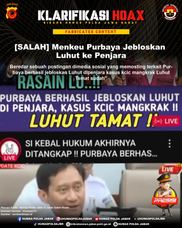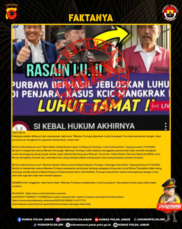 ![KLARIFIKASI HOAX – FABRICATED CONTENT [SALAH] Menkeu Purbaya Jebloskan Luhut ke Penjara](https://tribratanews.jabar.polri.go.id/wp-content/uploads/2025/11/Screenshot_16-2-585x375.png)