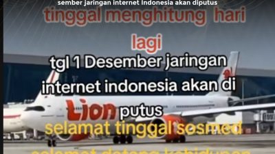 Beredar sebuah unggahan di media sosial yang berisi klaim “tanggal 1 Desember jaringan internet Indonesia akan diputus