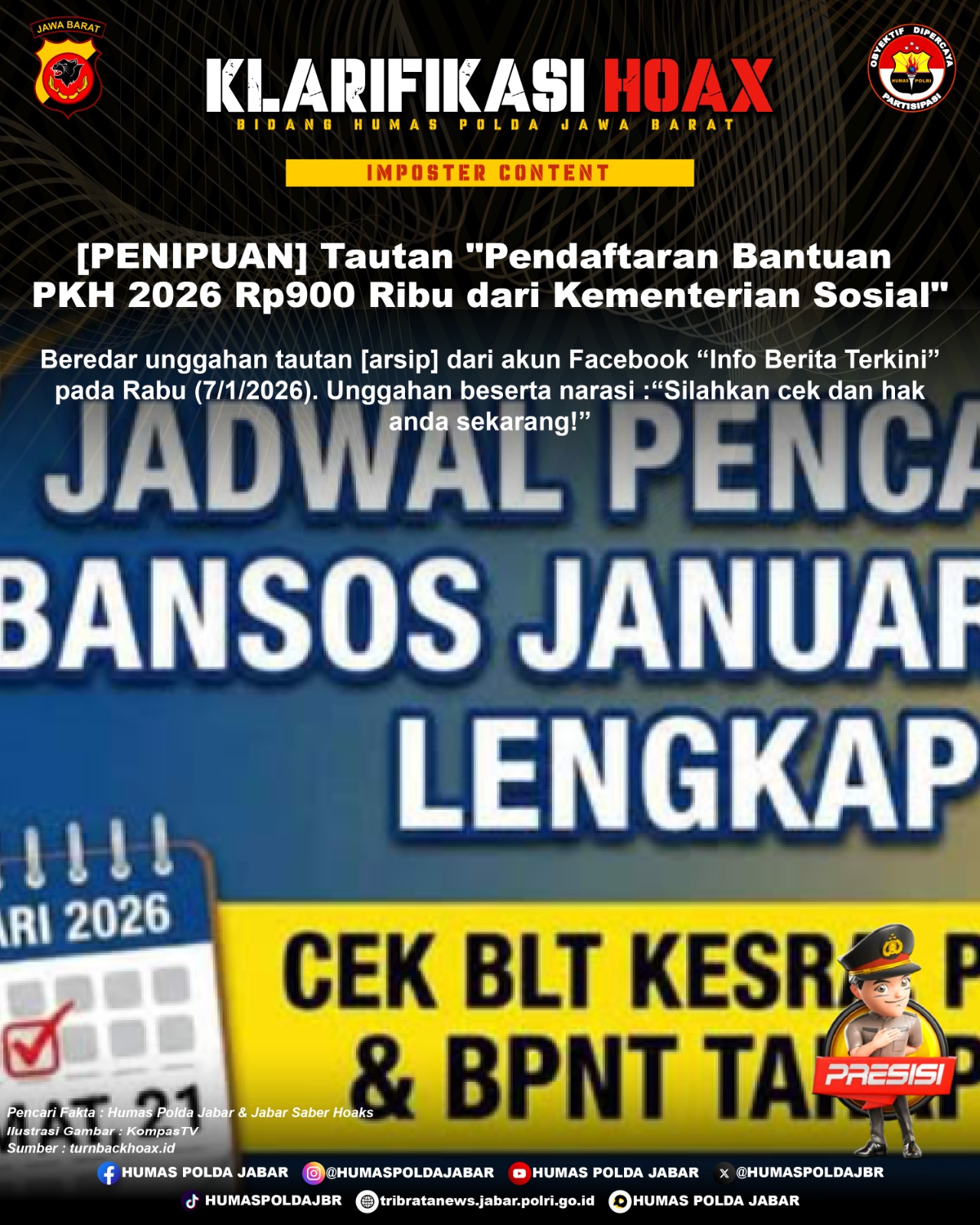 KLARIFIKASI HOAX – IMPOSTER CONTENT  [PENIPUAN] Tautan “Pendaftaran Bantuan PKH 2026 Rp900 Ribu dari Kementerian Sosial”