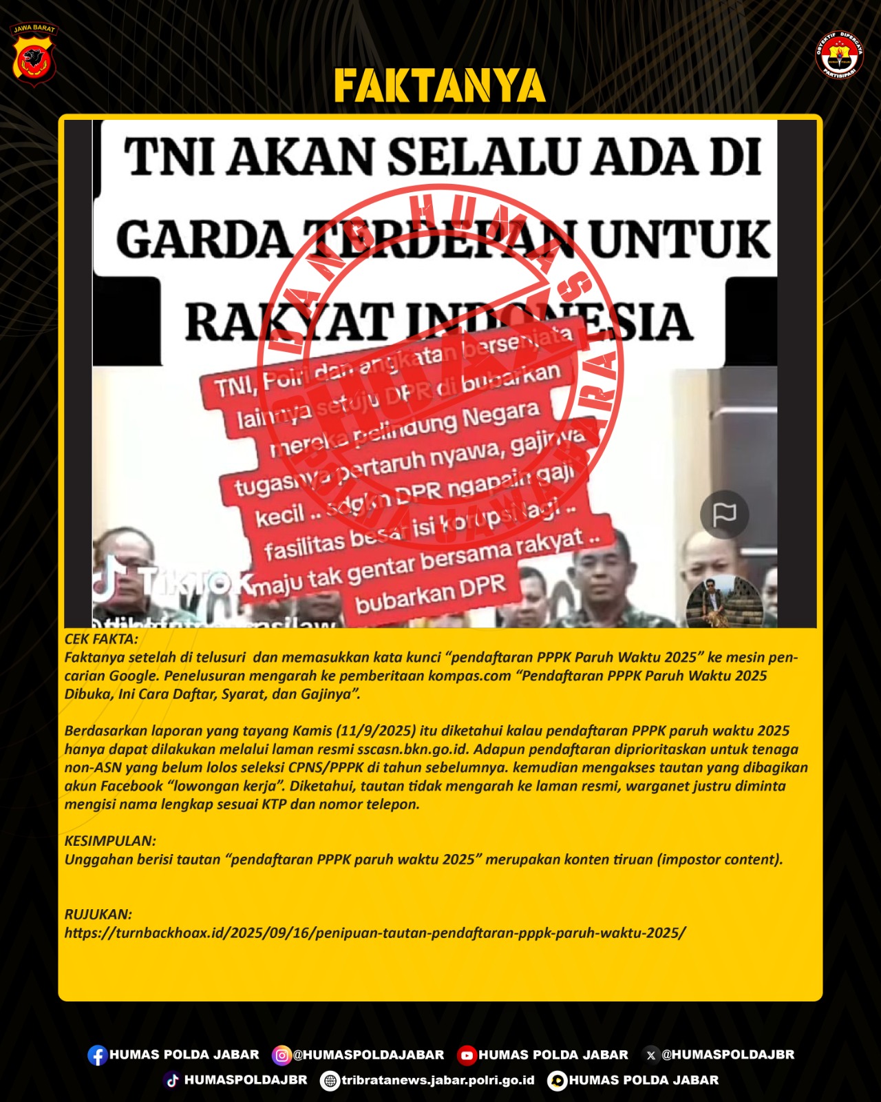 ![KLARIFIKASI HOAX – IMPOSTER CONTENT [PENIPUAN] Tautan “Pendaftaran PPPK Paruh Waktu 2025”](https://tribratanews.jabar.polri.go.id/wp-content/uploads/2025/09/WhatsApp-Image-2025-09-17-at-9.23.06-AM-750x375.jpeg)