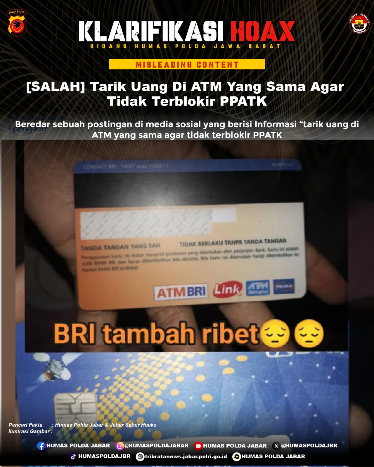 ![KLARIFIKASI HOAX – MISLEADING CONTENT [SALAH] Tarik Uang Di ATM Yang Sama Agar Tidak Terblokir PPATK](https://tribratanews.jabar.polri.go.id/storage/2025/08/WhatsApp-Image-2025-08-14-at-10.42.54-AM-750x375.jpeg)
