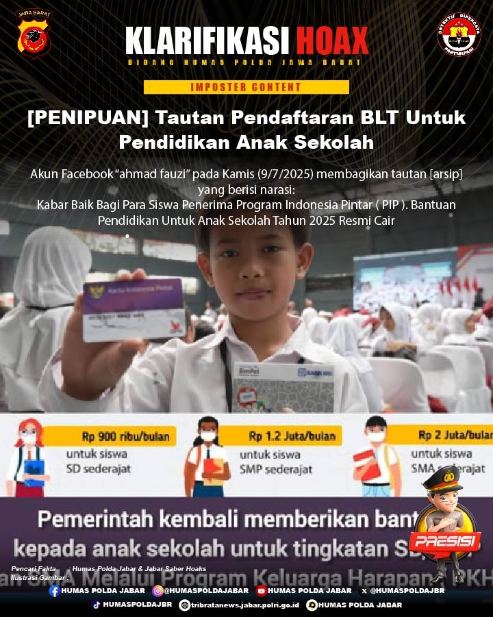 Sebelumnya sudah mengusut kebenaran klaim serupa lewat artikel “[PENIPUAN] Tautan “Pendaftaran BLT untuk Anak Sekolah” yang tayang pada Rabu (14/5/2025).