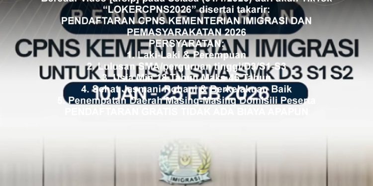 Beredar video [arsip] pada Selasa (31/1/2026) dari akun TikTok “LOKERCPNS2026” disertai takarir: