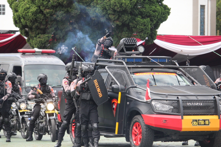 Rangkaian Upacara Pelantikan dan Pengambilan Sumpah Pendidikan Pembentukan Bintara Polri Tahun Anggaran 2025 di Lapangan M. Jasin SPN Polda Jawa Barat, Rabu (24/12/2025), semakin semarak dengan berbagai penampilan dan peragaan yang ditampilkan oleh para siswa Bintara Polri.