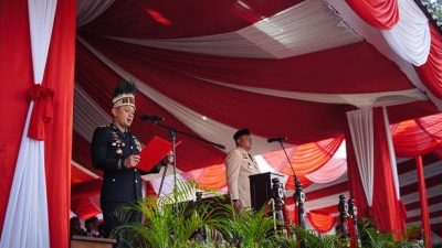 Kapolres Bogor, AKBP Wikha Ardilestanto, turut serta dalam upacara peringatan Hari Ulang Tahun (HUT) ke-80 Kemerdekaan Republik Indonesia yang digelar di Lapangan Tegar Beriman, Cibinong. Dalam upacara yang berlangsung khidmat pada Minggu (17/8/2025) ini, AKBP Wikha mendapat kehormatan untuk membacakan naskah Pancasila di hadapan seluruh peserta.