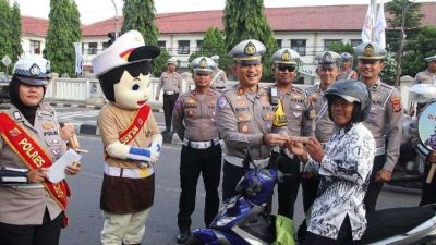 Kegiatan yang berlangsung di Jalan KH Abdul Halim, Majalengka, Selasa (25/11), dipimpin langsung oleh Kasat Lantas AKP Rudy Sudaryono. Petugas mendatangi para guru yang melintas, menyerahkan cokelat, suvenir, bunga, dan helm, sekaligus menyampaikan imbauan keselamatan berlalu lintas.