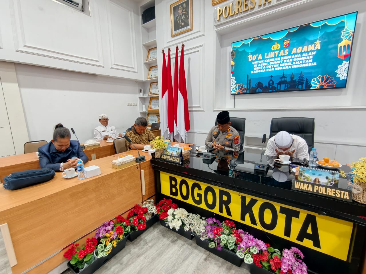 Acara doa bersama ini berlangsung khidmat di lingkungan Polresta Bogor Kota dan dihadiri oleh jajaran Polda Jawa Barat, pejabat utama Polresta Bogor Kota, tokoh-tokoh agama dari berbagai keyakinan, serta perwakilan masyarakat luas. Setiap perwakilan agama memanjatkan doa sesuai dengan keyakinan mereka masing-masing, menegaskan nilai persatuan dan kebersamaan bangsa dalam menghadapi musibah yang menimpa saudara-saudara se-Nusantara.