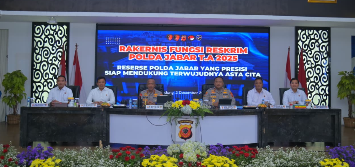 Polda Jawa Barat menggelar Rapat Kerja Teknis (Rakernis) Fungsi Reserse Kriminal Tahun Anggaran 2025, pada Selasa, 02 Desember 2025, di Aula Dit Lantas Polda Jabar. Rakernis ini dipimpin langsung oleh Kapolda Jawa Barat Irjen Pol. Rudi Setiawan, S.I.K., S.H., M.H., dan dihadiri oleh jajaran penyidik dari berbagai direktorat reserse.