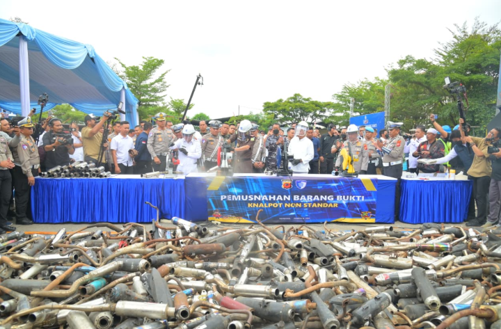 “Hasilnya, sebanyak 4.599 knalpot brong berhasil disita dan kini sedang dimusnahkan,” kata Kombes Pol Raydian Kokrosono.