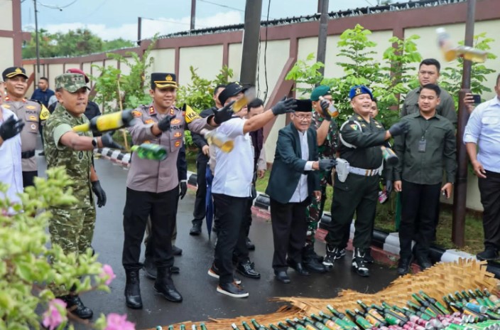 “Banyak kejadian kriminal berawal dari konsumsi miras. Inilah yang terus kami tekan. Sementara knalpot brong kami hancurkan total agar tidak kembali digunakan dan mengganggu kenyamanan warga,” tegas AKBP Fiki.