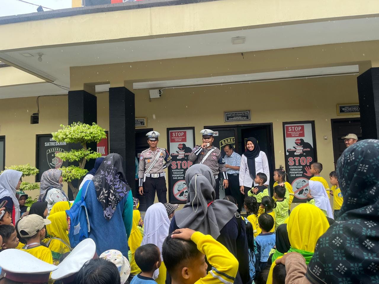 Polres Banjar menerima kunjungan edukatif dari siswa-siswi PAUD se-Desa Balokang dalam kegiatan Polantas Menyapa yang digelar di Mapolres Banjar, Rabu, 28 Januari 2026, pagi. Kunjungan ini menjadi momen berharga untuk memperkenalkan tugas-tugas kepolisian sejak usia dini melalui pendekatan yang ramah, menyenangkan, dan penuh edukasi.