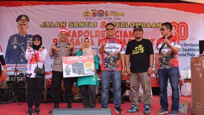 Dalam rangka memeriahkan Hari Ulang Tahun (HUT) ke-80 Kemerdekaan Republik Indonesia, Polres Ciamis menggelar acara jalan santai dan berbagai perlombaan di lapangan Desa Jalatrang, Kecamatan Cipaku. Acara yang dipimpin langsung oleh Kapolres Ciamis AKBP H. Hidayatullah ini berlangsung meriah, dipadati sekitar 5.000 warga yang antusias.