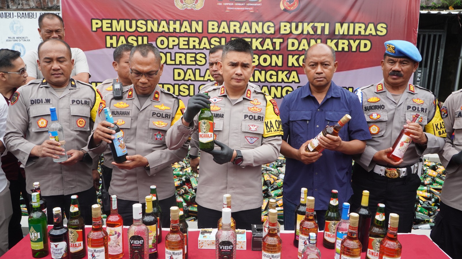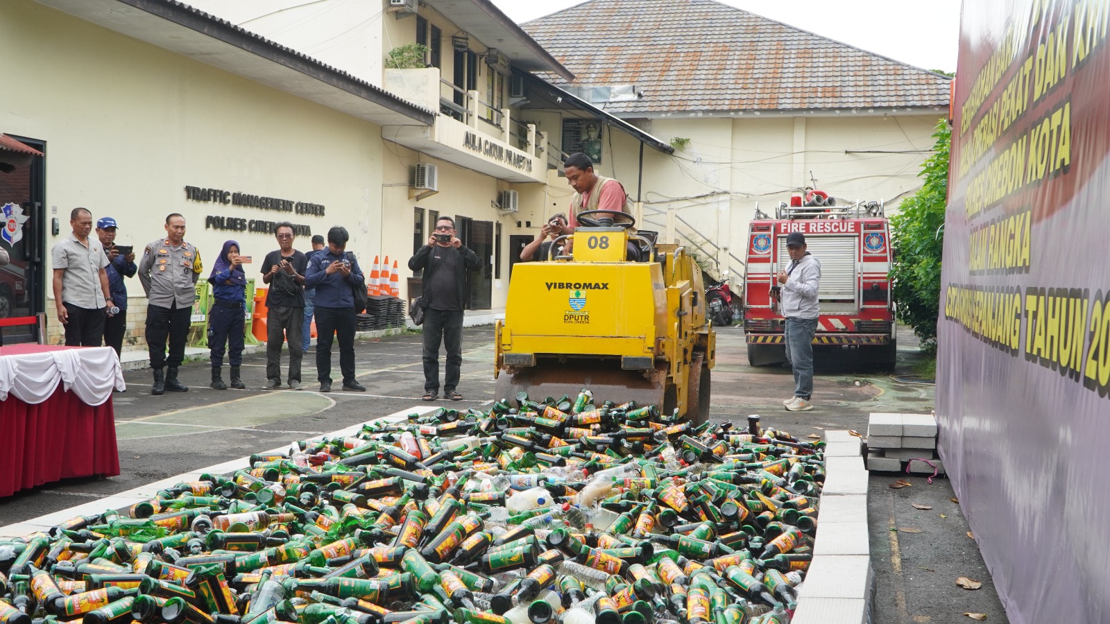 Polres Cirebon Kota “Zero Toleransi” Miras: Ribuan Botol Hasil Operasi Pekat dan KRYD Dimusnahkan