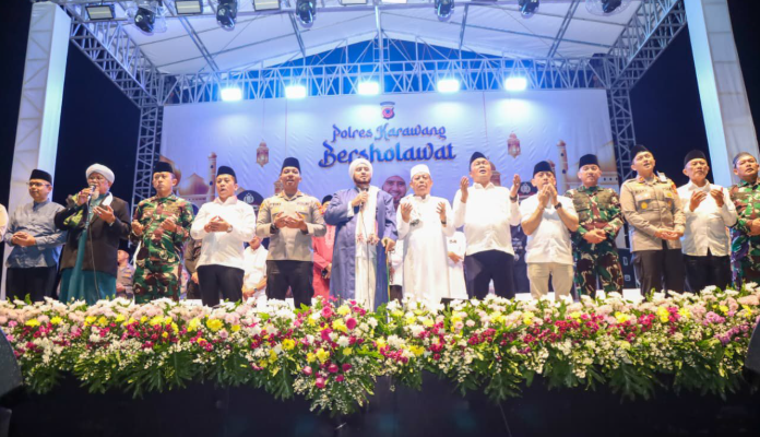 Polres Karawang mengadakan acara Karawang Bersholawat bersama Habib Syech bin Abdul Qodir Assegaf di Halaman belakang Mapolres Karawang, Senin (1/12/2025).