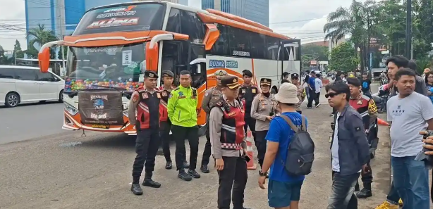 Polres Karawang melakukan pengamanan ketat terhadap keberangkatan 960 anggota Viking Karawang yang akan menyaksikan pertandingan Persib Bandung melawan Persija Jakarta di Stadion Gelora Bandung Lautan Api (GBLA) pada Minggu (11/1/2026). Titik keberangkatan para suporter Persib ini dipusatkan di depan Grand Taruma, Jalan Interchange Karawang Barat.