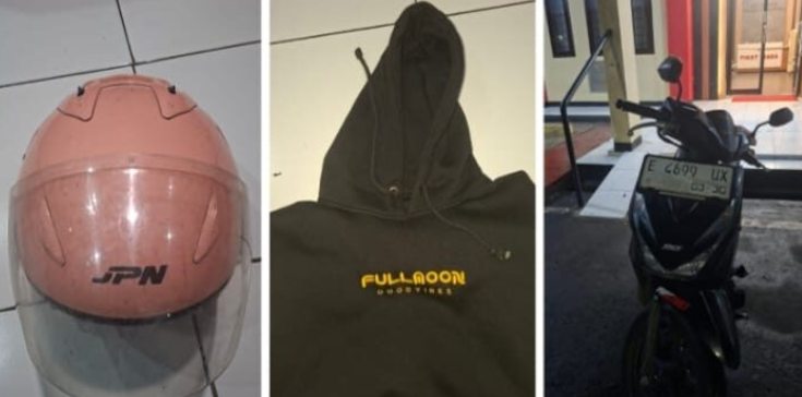 Udiyanto mengatakan, pihaknya mengamankan sejumlah barang bukti yang berkaitan dengan aksi kejahatan tersebut. Barang bukti yang disita antara lain dua buah kunci kontak sepeda motor, satu unit sepeda motor Honda Beat bernomor polisi E 4699 UX, satu buah helm berwarna pink, satu sweater hitam, serta satu set kunci astag yang diduga digunakan dalam menjalankan aksinya.