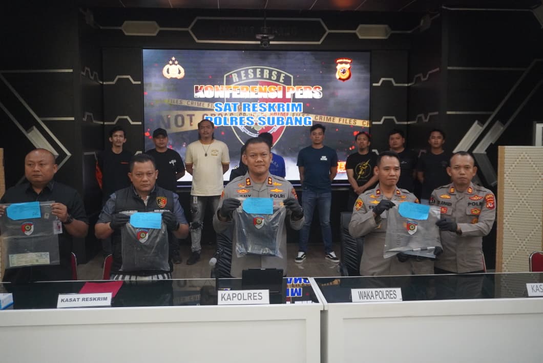 Polres Subang berhasil mengungkap kasus pembunuhan berencana yang terjadi di Kecamatan Cibogo, Kabupaten Subang. Pengungkapan ini disampaikan dalam konferensi pers yang dipimpin langsung oleh Kapolres Subang, AKBP Dony Eko Wicaksono S.H., S.I.K., M.H., Ph.D., pada Jumat, 22 Agustus 2025, di Aula Patriatama Polres Subang.