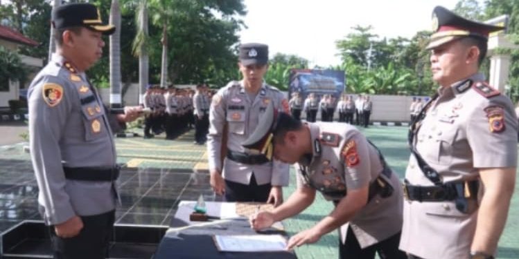 Rangkaian prosesi ditandai dengan pengucapan sumpah jabatan, penandatanganan dokumen resmi, serta penyerahan tanda jabatan sebagai simbol peralihan tanggung jawab. Kapolres menegaskan apresiasi kepada pejabat sebelumnya atas kerja keras dan pengabdian selama bertugas.