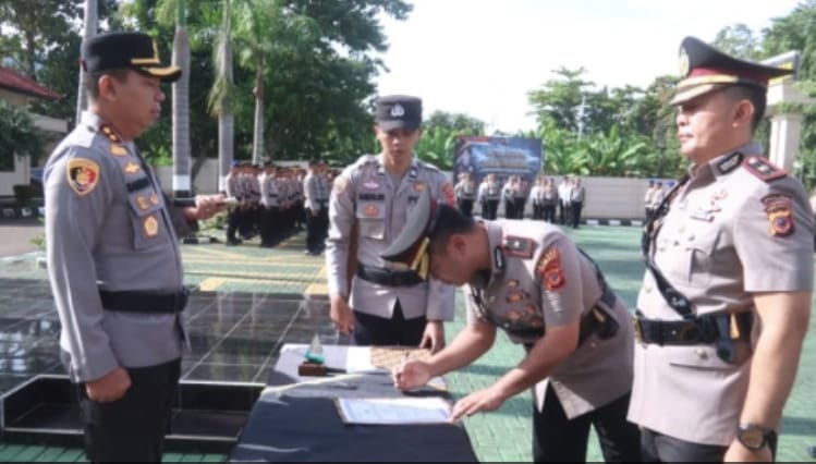Rangkaian prosesi ditandai dengan pengucapan sumpah jabatan, penandatanganan dokumen resmi, serta penyerahan tanda jabatan sebagai simbol peralihan tanggung jawab. Kapolres menegaskan apresiasi kepada pejabat sebelumnya atas kerja keras dan pengabdian selama bertugas.