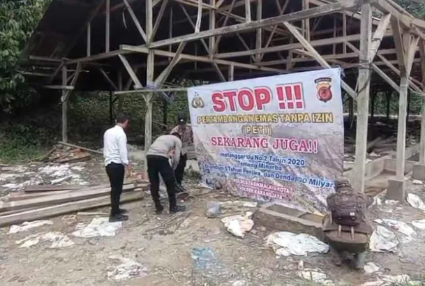 Penutupan ini dilakukan setelah petugas mendapatkan laporan adanya kegiatan pengolahan bahan tambang yang tidak memiliki izin resmi. Saat tiba di lokasi, aparat gabungan segera menutup area tersebut dan memasang spanduk serta garis polisi (police line) di sekitar lokasi yang diduga menjadi pusat pengolahan hasil tambang.