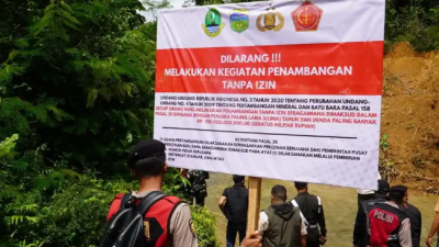 Tim gabungan yang terdiri dari TNI, Polri, dan Satpol PP Kabupaten Tasikmalaya memasang spanduk larangan aktivitas tambang emas ilegal di Blok Cipanawar, Desa Mandalahayu, Kecamatan Salopa, Kabupaten Tasikmalaya, pada Kamis (13/11/2025). Kegiatan ini dilakukan sebagai langkah antisipasi terhadap aktivitas Penambang Emas Tanpa Izin (PETI) yang meresahkan di wilayah Kecamatan Salopa.