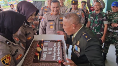 Dalam suasana penuh keakraban dan semangat sinergitas, jajaran Polresta Bandung memberikan kejutan ucapan selamat Hari Ulang Tahun (HUT) ke-80 Tentara Nasional Indonesia (TNI) di Kodim 0624/Kabupaten Bandung, Minggu (5/10/2025).