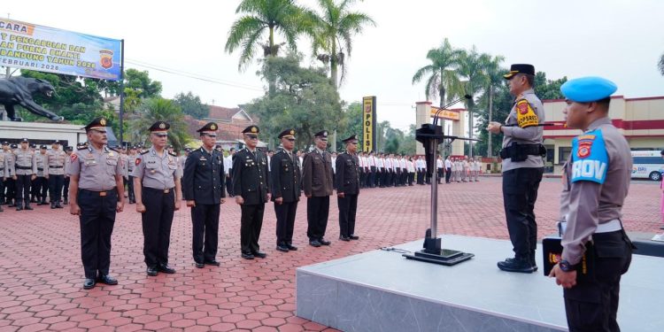 Upacara yang berlangsung khidmat ini dipimpin langsung oleh Kapolresta Bandung Kombes Pol Aldi Subartono, S.H., S.I.K., M.H., CPHR, selaku Inspektur Upacara. Turut hadir Pejabat Utama (PJU), para perwira, seluruh personel Polresta Bandung, serta pengurus Bhayangkari Cabang Kota Bandung.