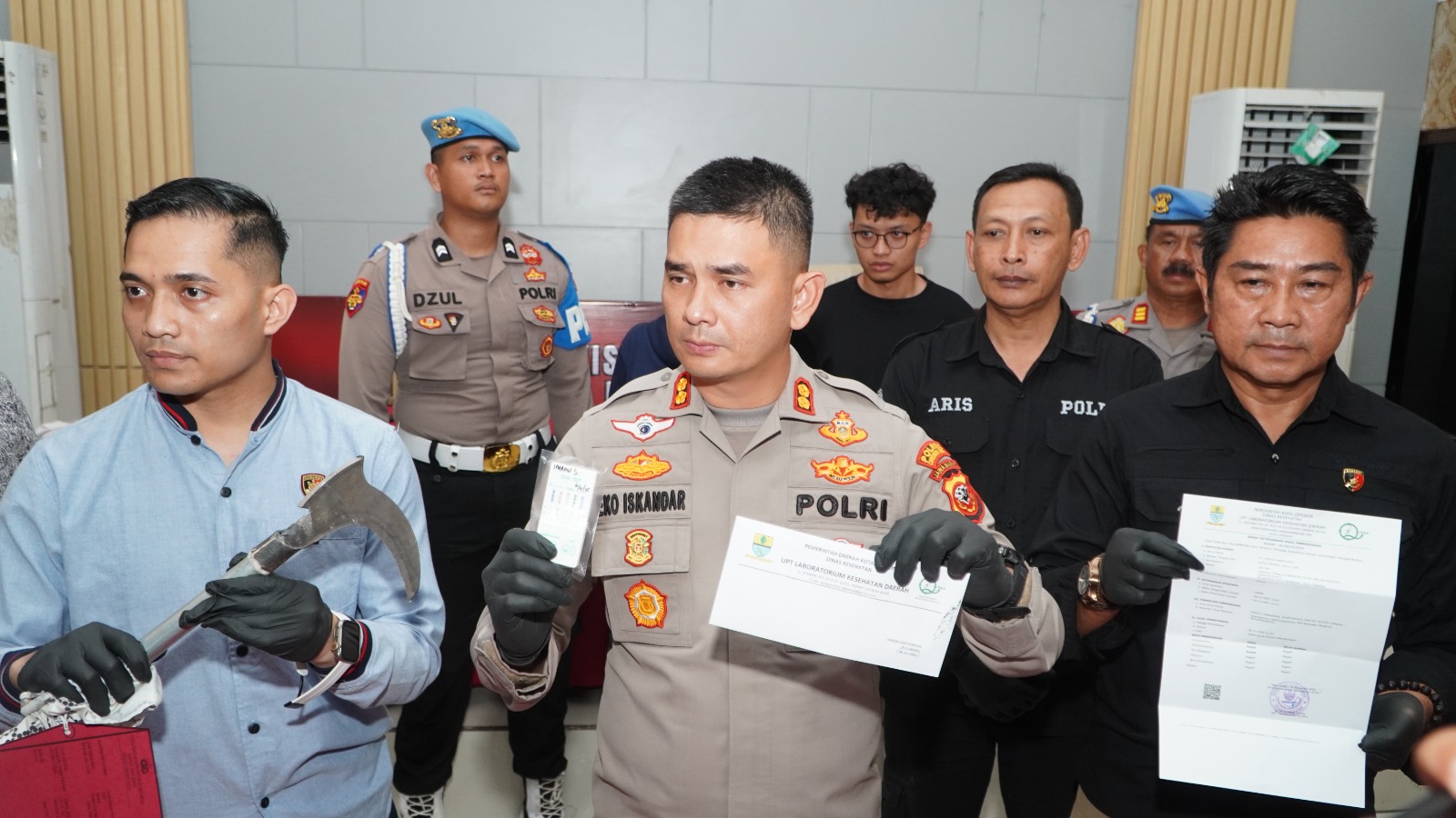 “Pelaku langsung memukul kaca depan rumah menggunakan senjata tajam tersebut ke arah anggota kami yang berdiri di depan jendela. Kaca pecah dan serpihan mengenai kaki korban,” jelas Kapolres AKBP Eko Iskandar. Tindakan pelaku yang membahayakan keselamatan petugas ini sangat disesalkan.