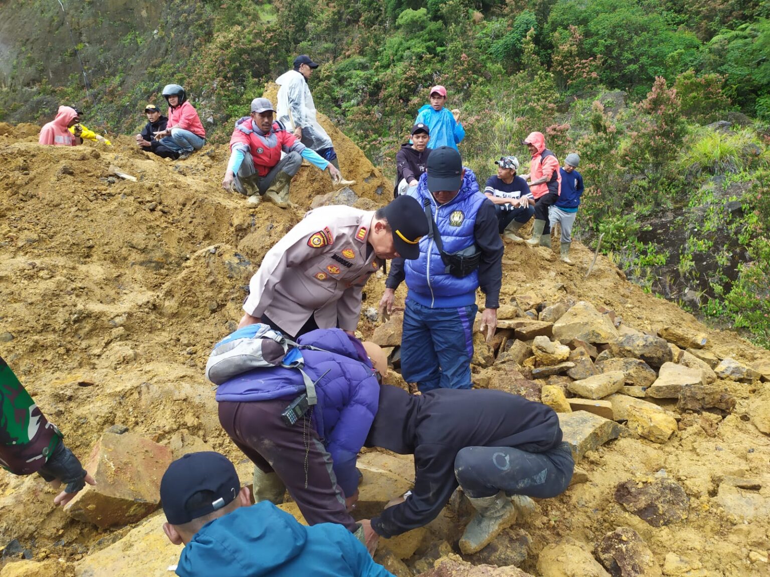 Polsek Cisurupan Pimpin Evakuasi Material Longsor di Kawah Gunung Papandayan, Akses Pendakian Diupayakan Pulih