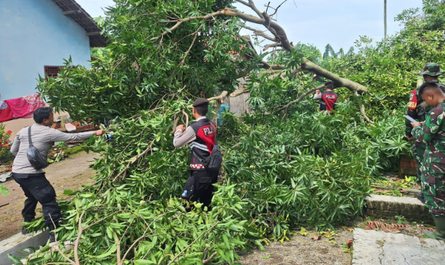 Jajaran Polsek Klangenan bersama TNI dan instansi terkait melaksanakan penanggulangan pasca bencana alam angin puting beliung, Sabtu (15/11/2025). Kegiatan tersebut dilaksanakan di Desa Slangit, Desa Bangodua Kecamatan Klangenan dan Desa Bakung Kidul Kec. Jamblang Kabupaten Cirebon.