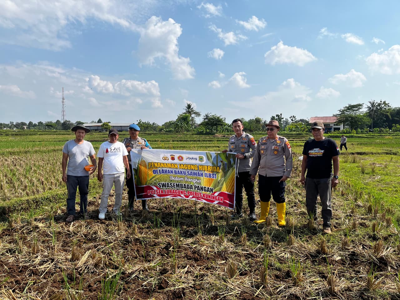 Polsek Luragung Kuningan Dukung Ketahanan Pangan, Gandeng Petani Tanam Jagung Hibrida di Lahan Baku Sawah