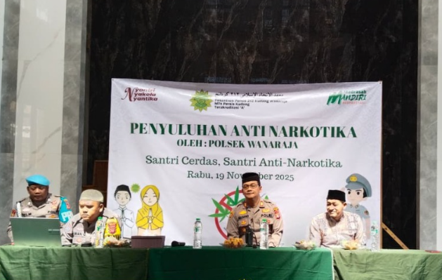 Polsek Wanaraja terus menunjukkan komitmennya dalam menjaga generasi muda dari ancaman kenakalan remaja dan penyalahgunaan narkoba. Salah satu upaya yang dilakukan adalah melalui program “Polsek Menyapa Pesantren” yang menyasar lingkungan pendidikan Islam. Pada hari Kamis, 20 November 2025, Kapolsek Wanaraja, AKP Abusono, SH., MH., beserta jajaran anggotanya melaksanakan kegiatan penyuluhan di MTs Persis Kudang, Wanaraja, Garut.