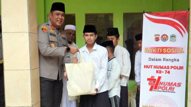 Dalam rangka memperingati Hari Ulang Tahun (HUT) ke-74 Humas Polri, Polres Tasikmalaya menggelar kegiatan bakti sosial bertajuk “Jumat Berkah” di Pondok Pesantren Sabilulhuda, Desa Sukasukur, Kecamatan Mangunreja. Kegiatan yang dilaksanakan pada Jumat (24/10) ini menjadi wujud nyata komitmen Polri untuk mempererat kemitraan dengan masyarakat, terutama di lingkungan pendidikan keagamaan.