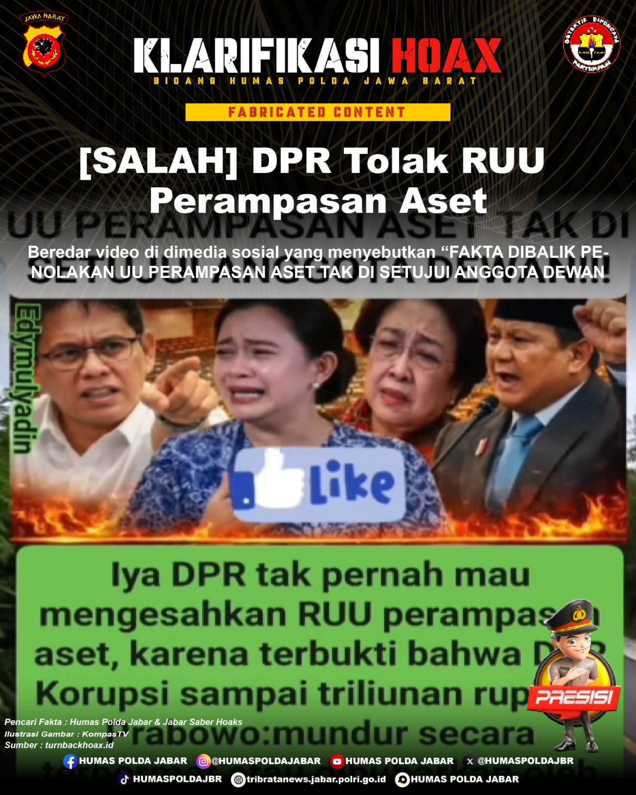 Sepanjang penelusuran, tidak ditemukan informasi dari sumber kredibel yang membenarkan klaim “DPR tolak RUU Perampasan Aset”.