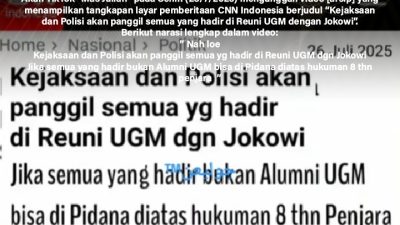 Akun TikTok “Mas Julian” pada Senin (28/7/2025) mengunggah video [arsip] yang menampilkan tangkapan layar pemberitaan CNN Indonesia berjudul “Kejaksaan dan Polisi akan panggil semua yang hadir di Reuni UGM dengan Jokowi”.