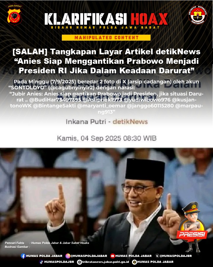 ![[SALAH] Tangkapan Layar Artikel detikNews “Anies Siap Menggantikan Prabowo Menjadi Presiden RI Jika Dalam Keadaan Darurat”](https://tribratanews.jabar.polri.go.id/wp-content/uploads/2025/09/WhatsApp-Image-2025-09-26-at-8.34.04-AM-720x375.jpeg)