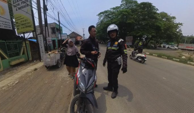 Dalam rangka Operasi Lilin Lodaya 2025, anggota Satlantas Polres Karawang, Bripka Syarif Hidayat menggelar sosialisasi Kamseltibcarlantas, dengan tetap mengajak warga Karawang agar selalu menjalankan ketertiban berlalu lintas, Senin (22/12/2025).
