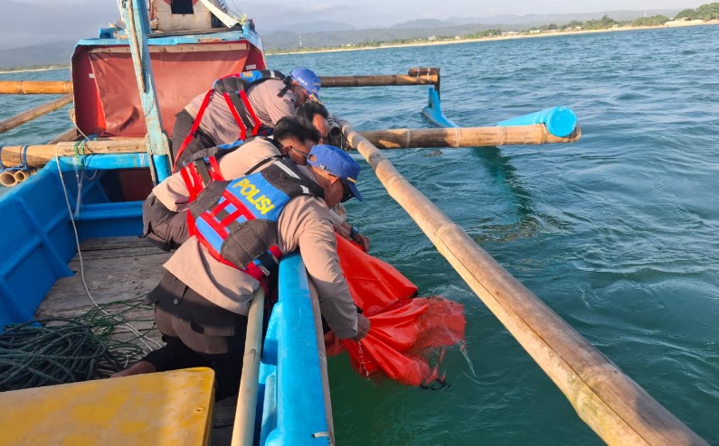 SatPolair Bersama Relawan Nelayan Berhasil Temukan Korban Tenggelam di Pantai Karangpapak