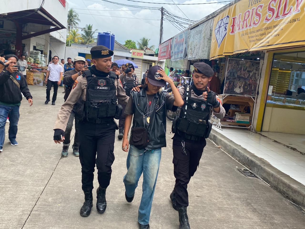 Dari hasil penyisiran di area pasar, petugas mengamankan beberapa orang untuk diperiksa lebih lanjut. Salah satu yang menarik perhatian adalah seorang pria berinisial RF, yang kedapatan membawa gelang tangan terbuat dari 15 butir selongsong peluru serta empat bungkus bubuk kratom. Barang-barang tersebut langsung diamankan sebagai barang bukti, sementara RF digelandang ke Polres Sumedang untuk menjalani pemeriksaan intensif.